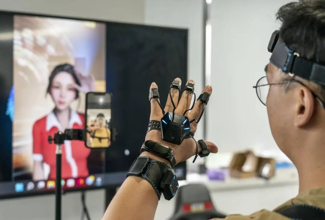 武汉灏存科技有限公司技术人员借助可穿戴设备,操控虚拟人物做动作