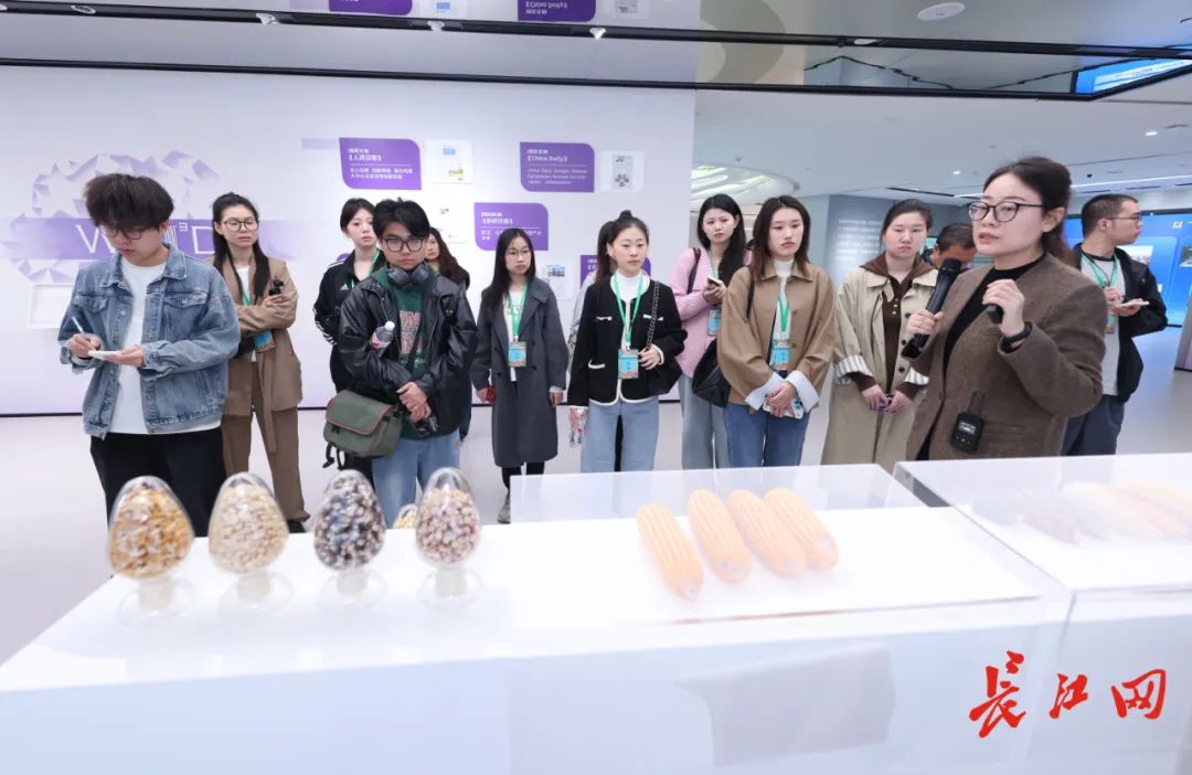 展厅内,依次展示着高产高蛋白宜机收玉米、新兴二维半导体材料黑磷……在这里,众多科研成果“从书架走向市场”。武汉大学遥感信息工程学院2021级遥感科学与技术专业本科生姚恬乐认真观看了展出的科技创新成果,她感慨道:“我感受到市场对科研成果的实际需求,我想要探索遥感从国用到民用的更多可能性。”