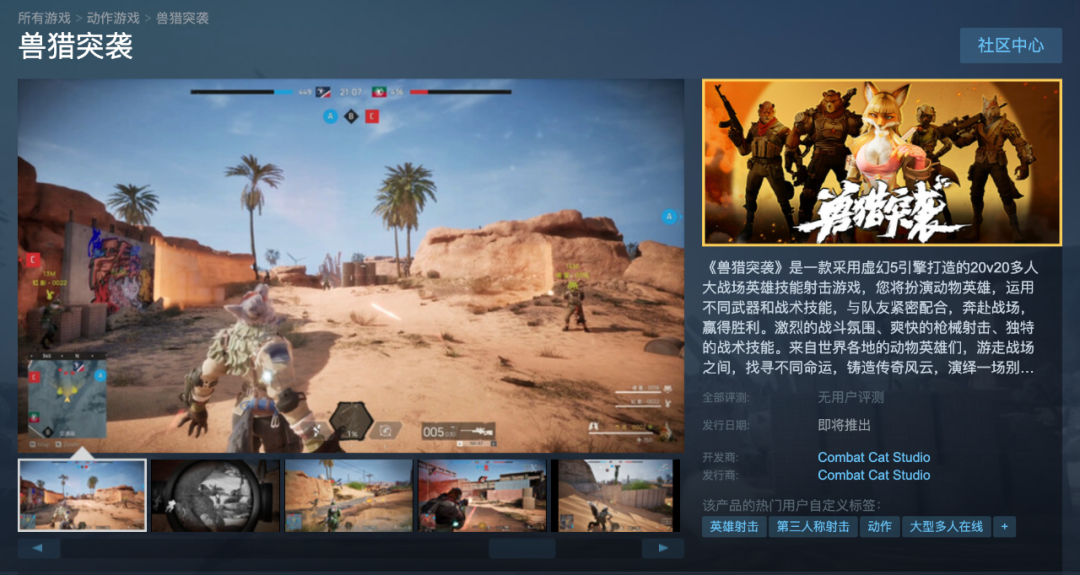 与此同时,由金山武汉团队自主打造的另一款国产枪战新游《兽猎突袭》也进入上线倒计时。该游戏计划于4月在Steam、Epic等平台推出抢先体验版本。