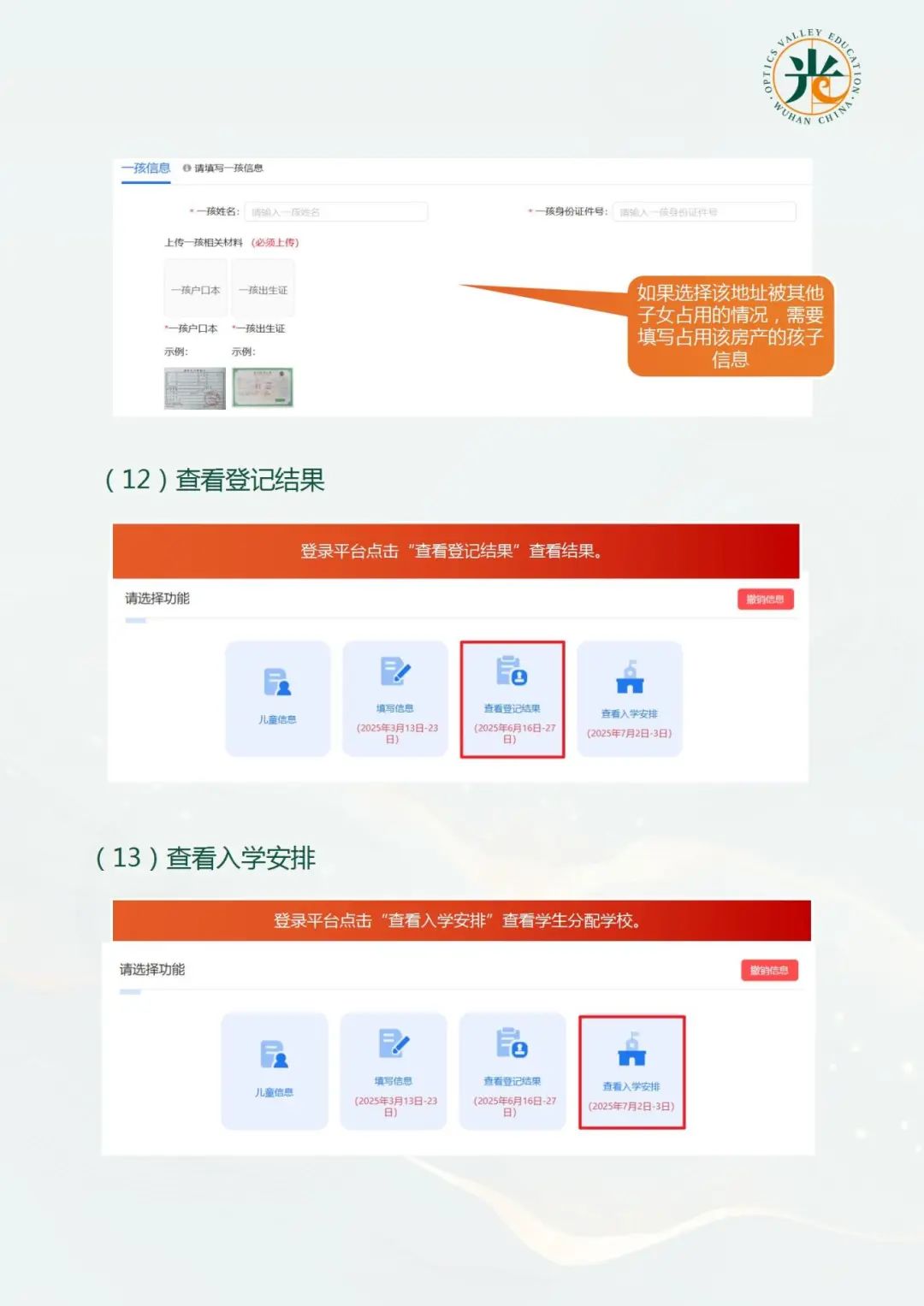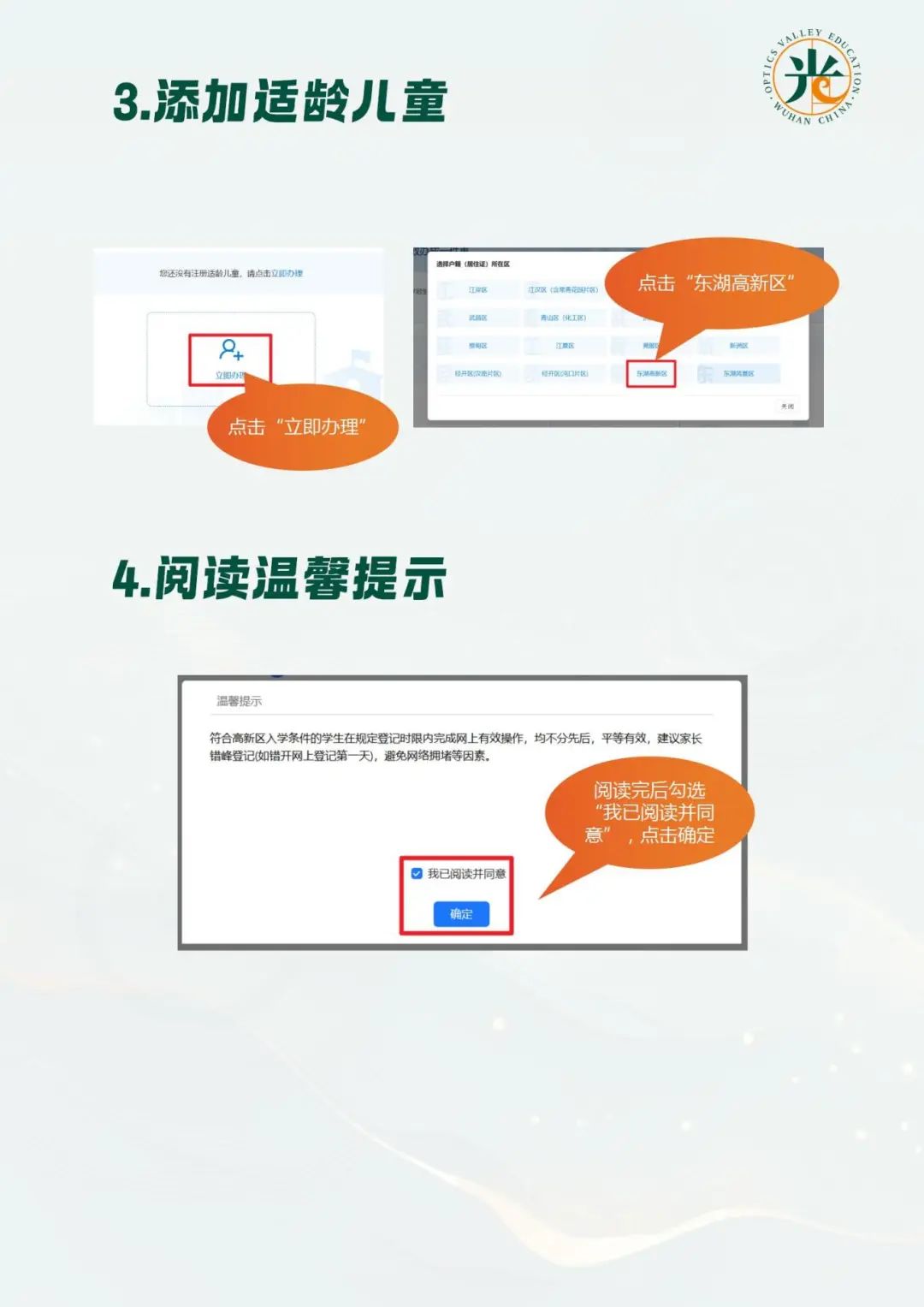 光谷家长们注意啦!2025年武汉义务教育新生入学通知来了!3月13日至3月23日(首次摸底登记时间),东湖高新区符合入学条件的小学一年级新生,可通过“武汉市中小学入学招生学籍一体化管理平台”完成填报。