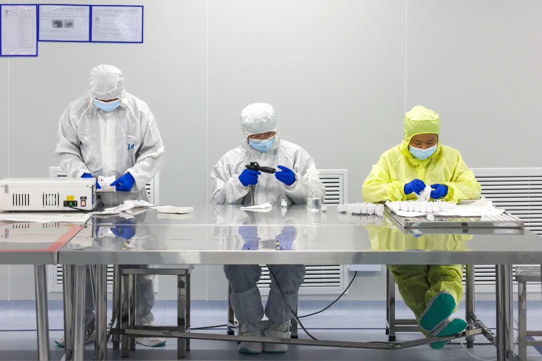 奥绿新技术人员正在洁净室内进行产品生产