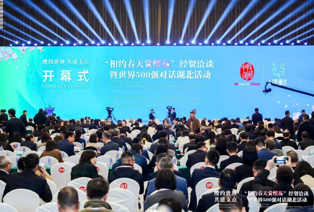 3月20日,2025“相约春天赏樱花”经贸洽谈暨世界500强对话湖北活动在东湖国际会议中心举行。