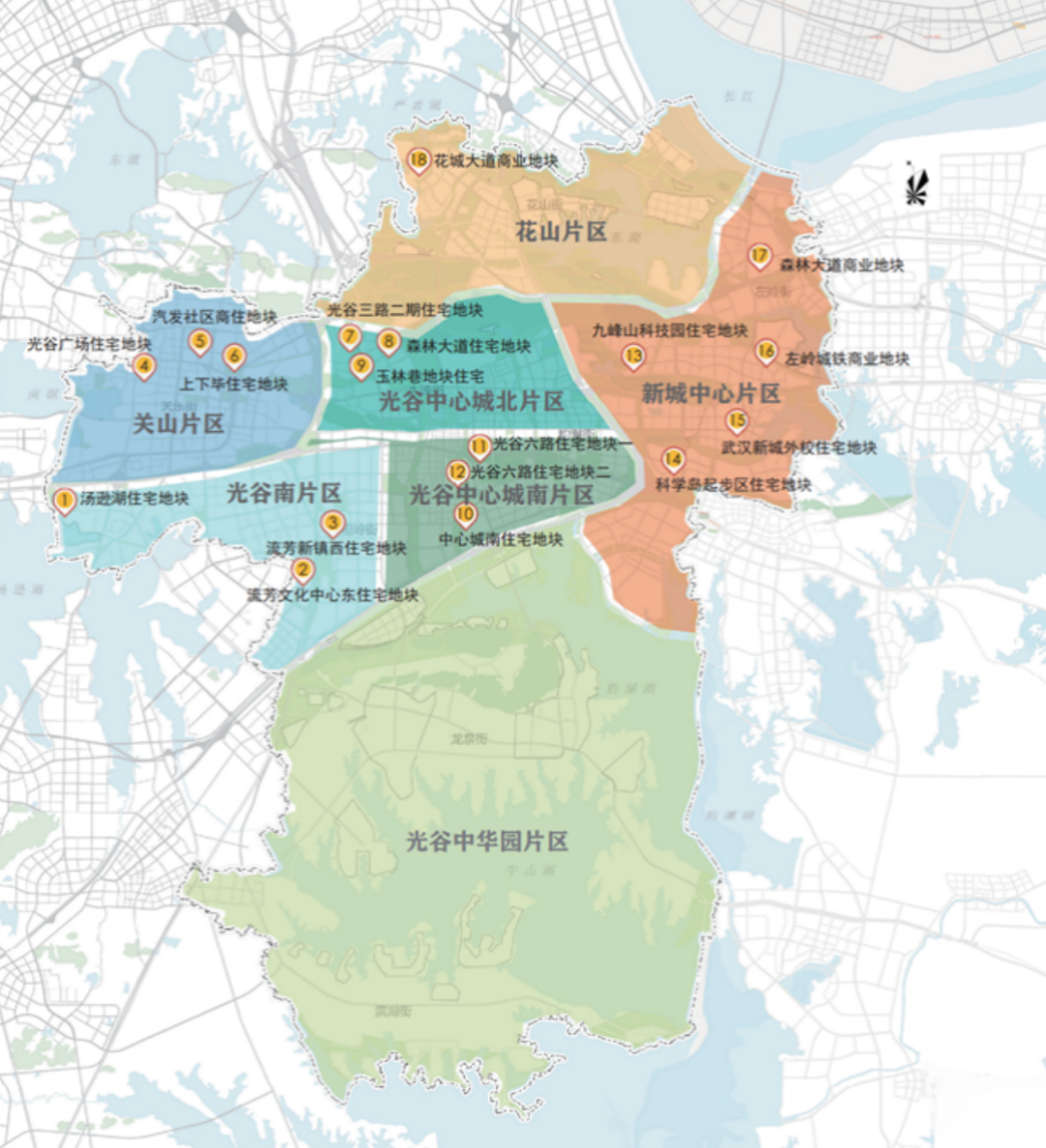 以“山水间、商圈里、学府旁、产业边”为核心价值,光谷此次推出18个地块,覆盖光谷南片区、关山片区、光谷中心城北片区、光谷中心城南片区、新城中心片区及花山片区,土地面积总计约1600亩,涵盖住宅、商住混用、商服等多类用地,吸引企业前来投资兴业,为高质量发展和高品质生活提供空间载体。