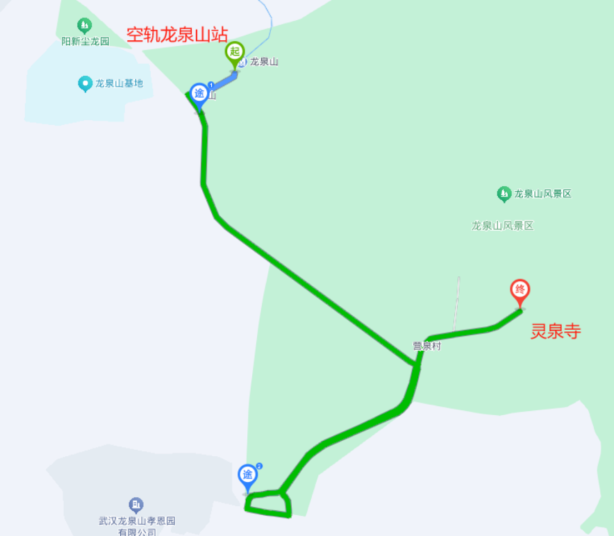 由空轨龙泉山站经高新七路、楚天名山牌坊至灵泉寺(单程5.2公里)