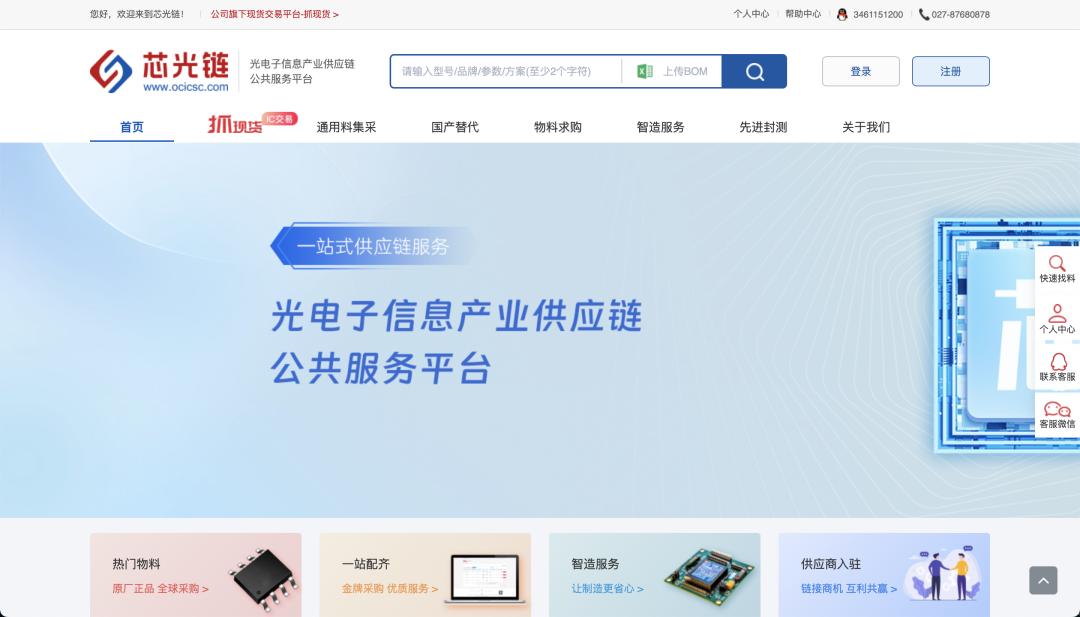 据悉,该平台由长江产业集团牵头,提供通用物料集采、核心电子元器件资源库、供需对接、供应链托管等服务,致力于光电子信息产业降本增效和保供稳供。自2023年底上线运行以来,交易总额已突破62亿元。