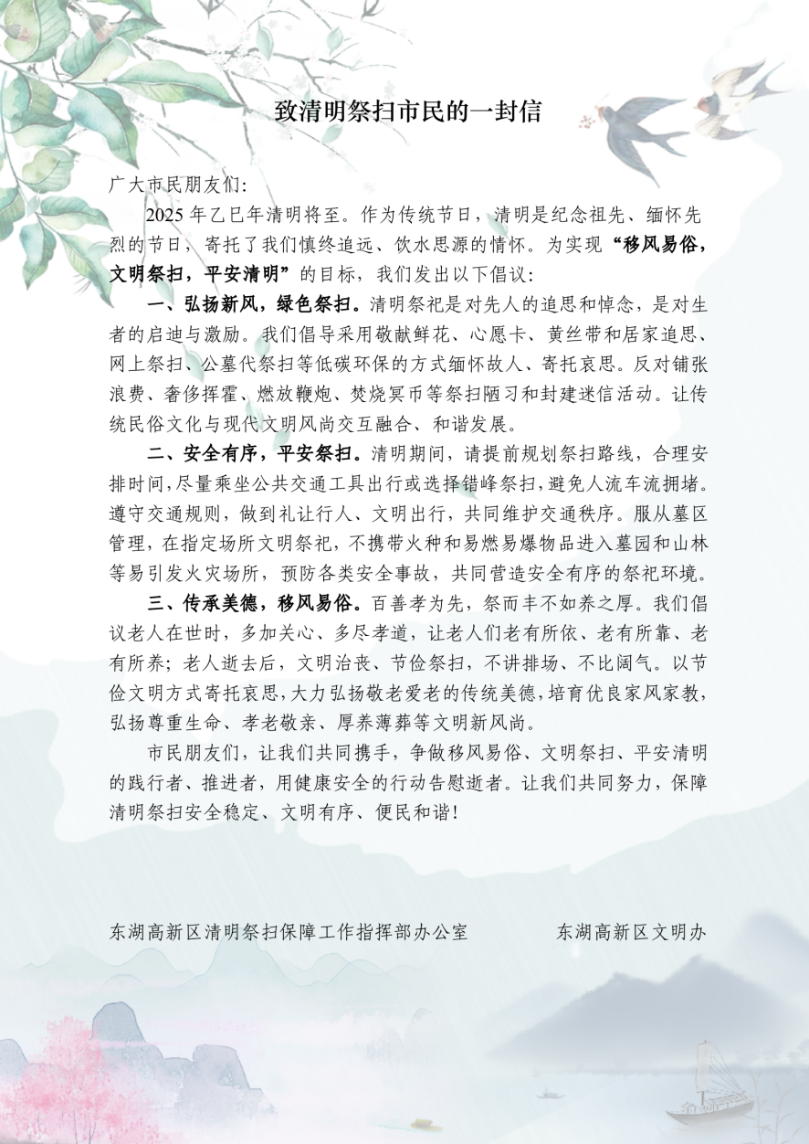 清明是纪念祖先、缅怀先烈的节日,为实现“移风易俗,文明祭扫,平安清明”,这封信请您查收↓