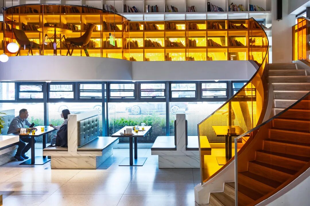 M-café约1200平方米,M取自医疗英文medical的首字母。正如咖啡店名里的医疗元素,该餐厅成为园区内迈瑞医疗、联影医疗、奥绿新等200多家生物企业、4000多名员工的“补给站”。