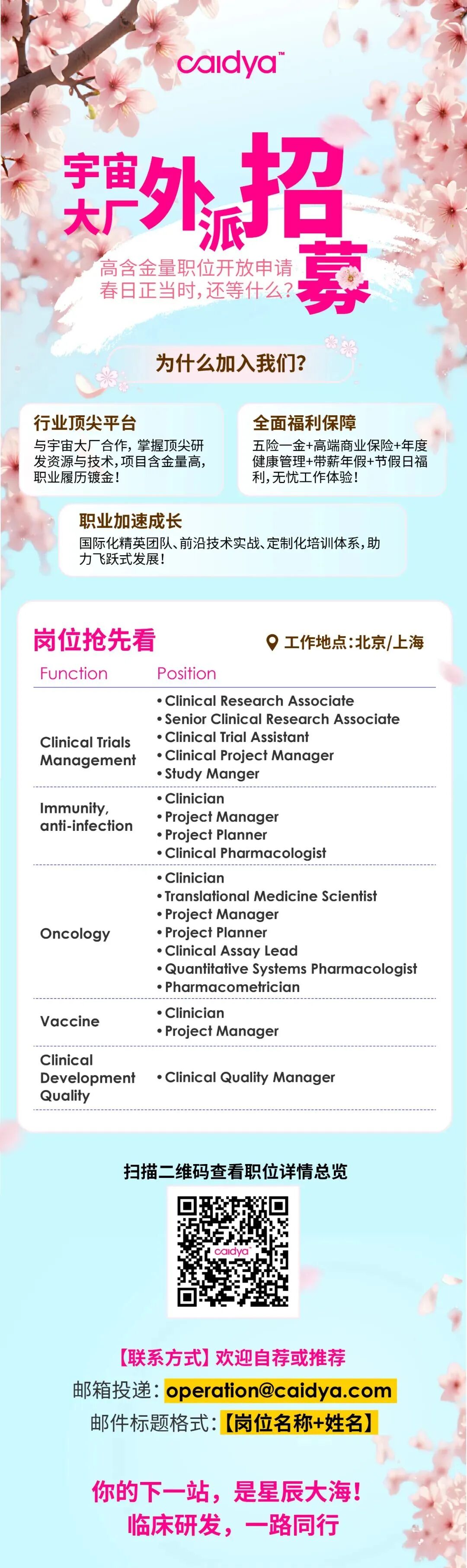 Caidya(康缔亚)是一家为全球创新生物医药企业提供多个治疗领域解决方案的临床合同研究组织。凭借专业的临床技术,康缔亚助力客户以个性化的方案解决各项问题,确保临床试验透明度和制定数据驱动决策。目前业务和员工分布在全球30多个国家和地区。
