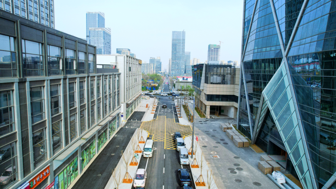 三泰街西接豹溪路道口,东接星辰路道口,全长1548米,双向2车道,沿线串联了武汉大悦城、凯德1818、奥山沃德等多家大商业综合体。整条道路路灯采用多杆合一智慧化设计,集成5G基站、智能照明及交通监控系统,将提升40%路网通行效率,有力打通中心城区道路微循环系统。
