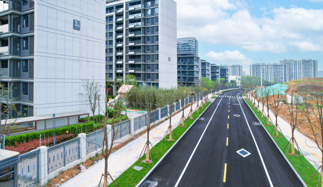 紫荷路全长约1.1公里,南起豹溪路,北至流芳园横路,透水铺装率达85%的步行系统,搭配智慧灌溉绿化带。通车后将进一步便利正荣府、鼎正悦府等5个小区万余名居民出行,同时有效链接周边社区医院和商业配套。
