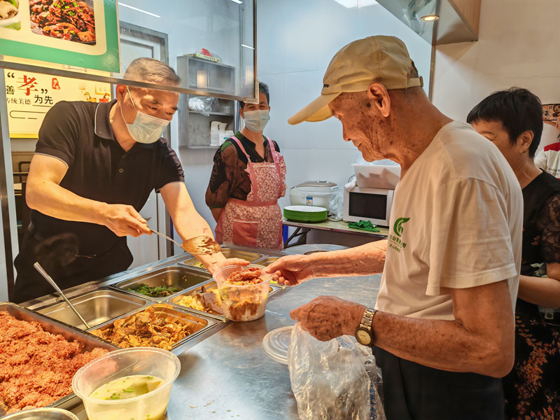 关东街关山社区幸福食堂位于东湖高新区新竹路,面积约180平方米,已服务超2000位65岁以上的老人。78岁的邱奶奶常来用餐,她说:“孩子在外地工作,这里解决了我的吃饭难题!食堂工作人员看我行动不便,还会搀扶一下。”