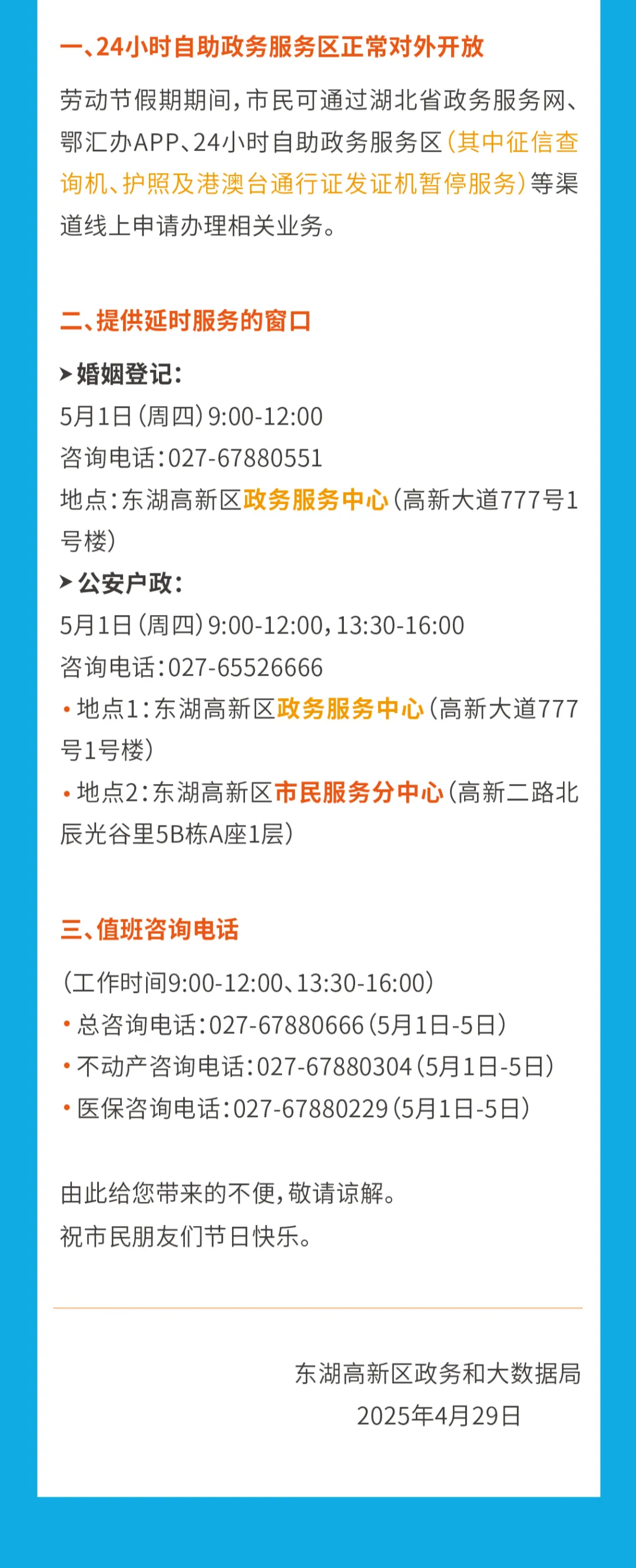 提示:五一期间,除光谷政务服务中心分馆外,其他分馆正常开放。