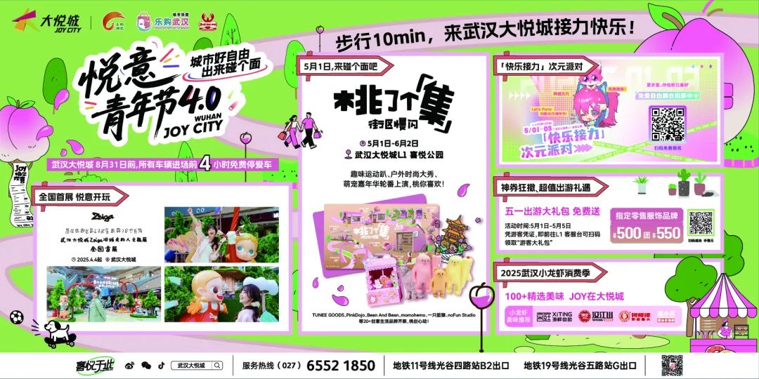 ????活动:武汉大悦城“悦意青年节4.0”五一正式启幕!TUNEE GOODS、PinkDojo、Bean And Bean、momohemo、一只脏猴、noFun Studio等20+创意生活品牌齐聚,桃创心动!还有趣味运动趴、户外时尚大秀、萌宠嘉年华轮番上演,只为“桃”你喜欢!
