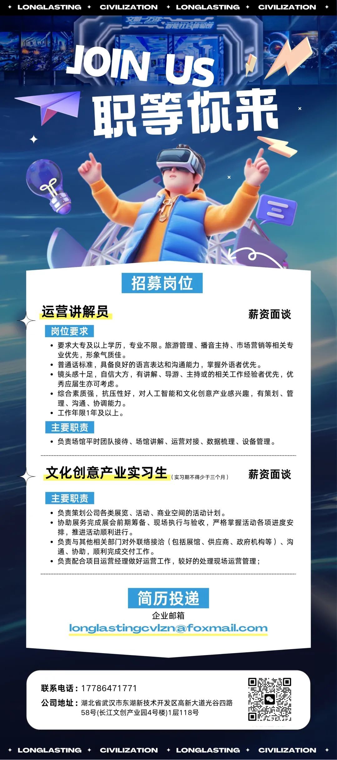 “文明一万年·智能社会体验馆”是北京大学武汉人工智能研究院重点打造的国家智能社会治理实验综合基地项目。总部位于湖北长江文创产业园,占地面积1500平方米,体验馆集成了AI数字人、接入大语言模型、AIGC、VR沉浸式大空间及LBE大空间娱乐定位等前沿技术,为观众带来沉浸式跨时空体验,目前已在全国各地复制落点十余处。