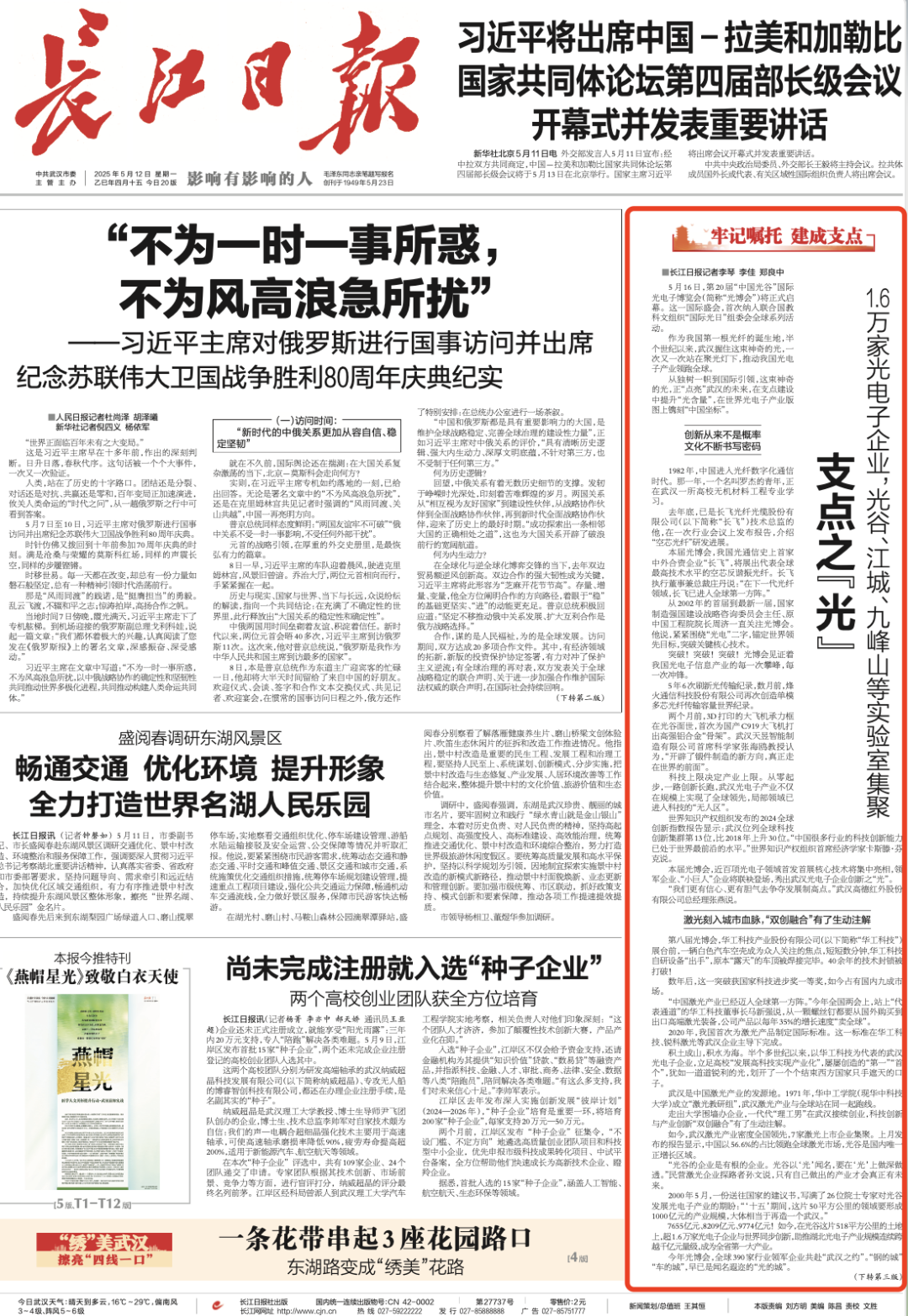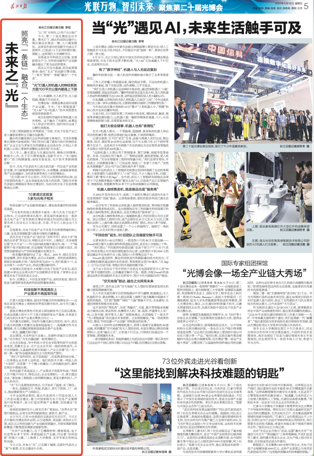 5月15日至17日,第20届“中国光谷”国际光电子博览会(简称“光博会”)在中国光谷科技会展中心举行。长江日报接连刊发报道,以支点之光、国际之光、未来之光“三光”致20届光博会。