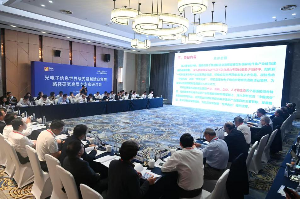 5月16日下午,光谷会展中心三楼多功能厅,一场面向未来的产业会议正在进行。周济、邬贺铨、李德仁、范滇元、庄松林、刘经南、李培根、尤政、谭久彬等9位院士,肖华、冯记春、谢冰玉、易建、熊梦等7位专家,何书平、马新强、庄丹、刘伟平、闫大鹏、王志敏等8位企业家参会,商讨光谷如何建设光电子信息世界级先进制造业集群,从“中国光谷”走向“世界光谷”。研讨会由武汉市委常委、东湖高新区党工委书记沈悦主持,湖北省经信厅一级巡视员周开斌,武汉市副市长李湛等省市代表出席。