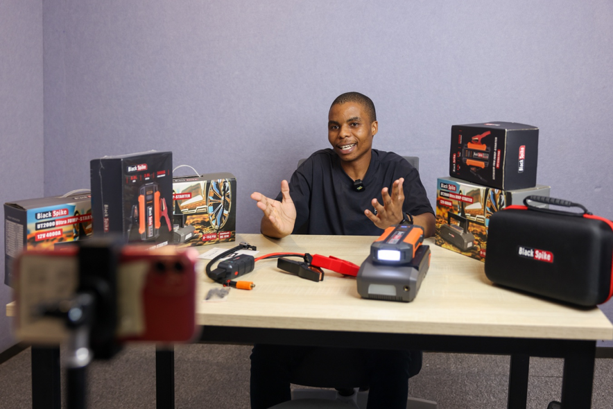 日前,在位于光谷中心城的长江国贸跨境电商产业园(简称“产业园”)直播间内,28岁的南非留学生Nduduzo Fanele Magwaza(中文名“马恩”)正向全球观众推介一款汽车应急电池。短短半年,他的TikTok账号粉丝突破2万,单条视频播放量近百万。