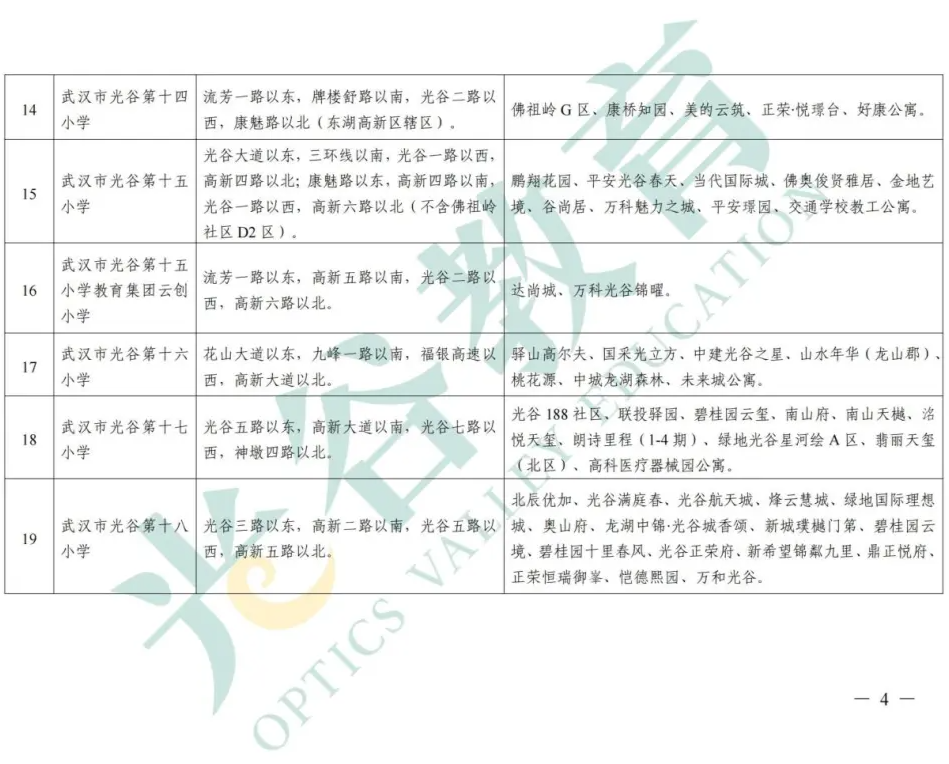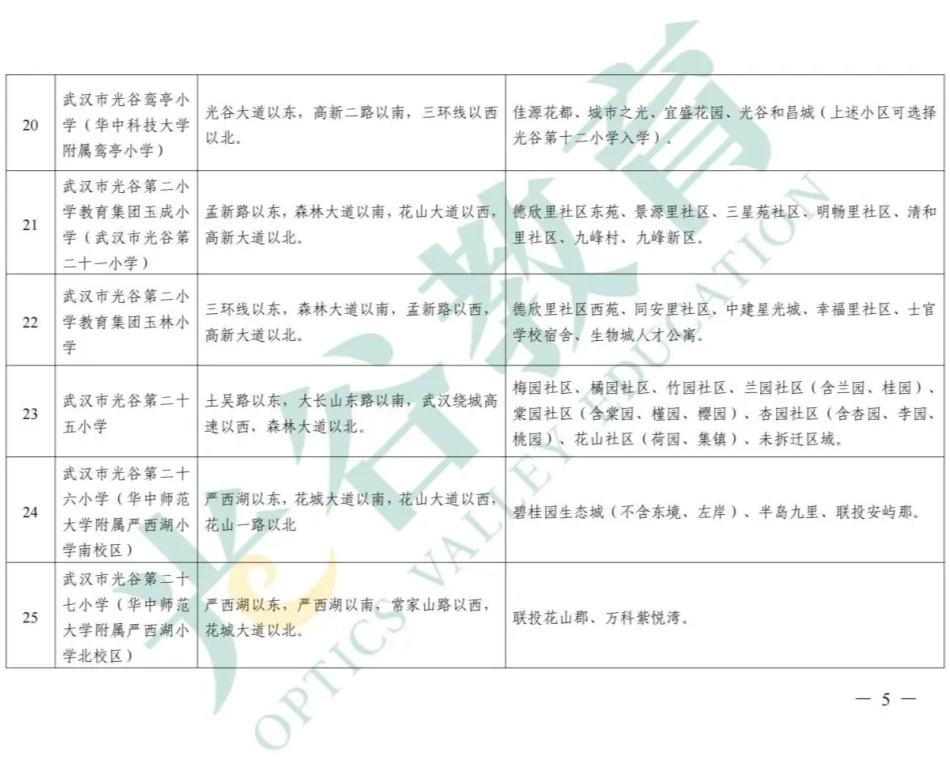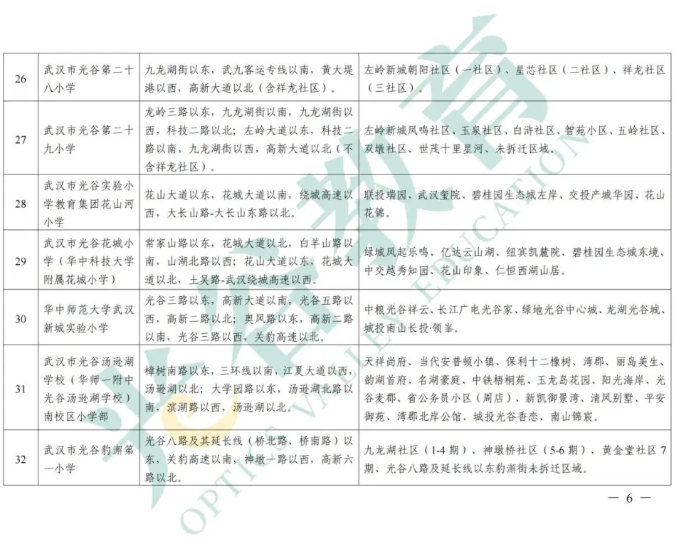 东湖高新区2025-2026学年度小学服务范围