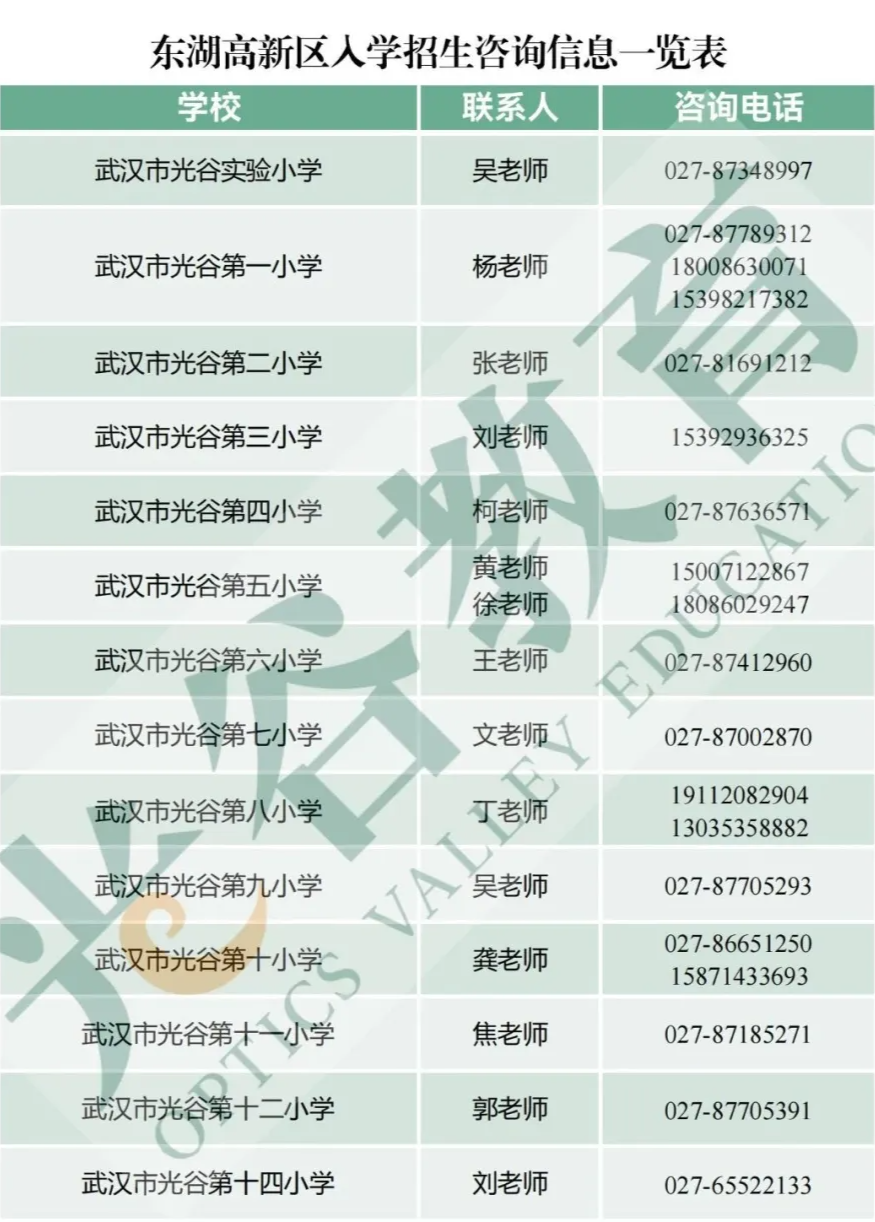 东湖高新区中小学入学招生咨询电话