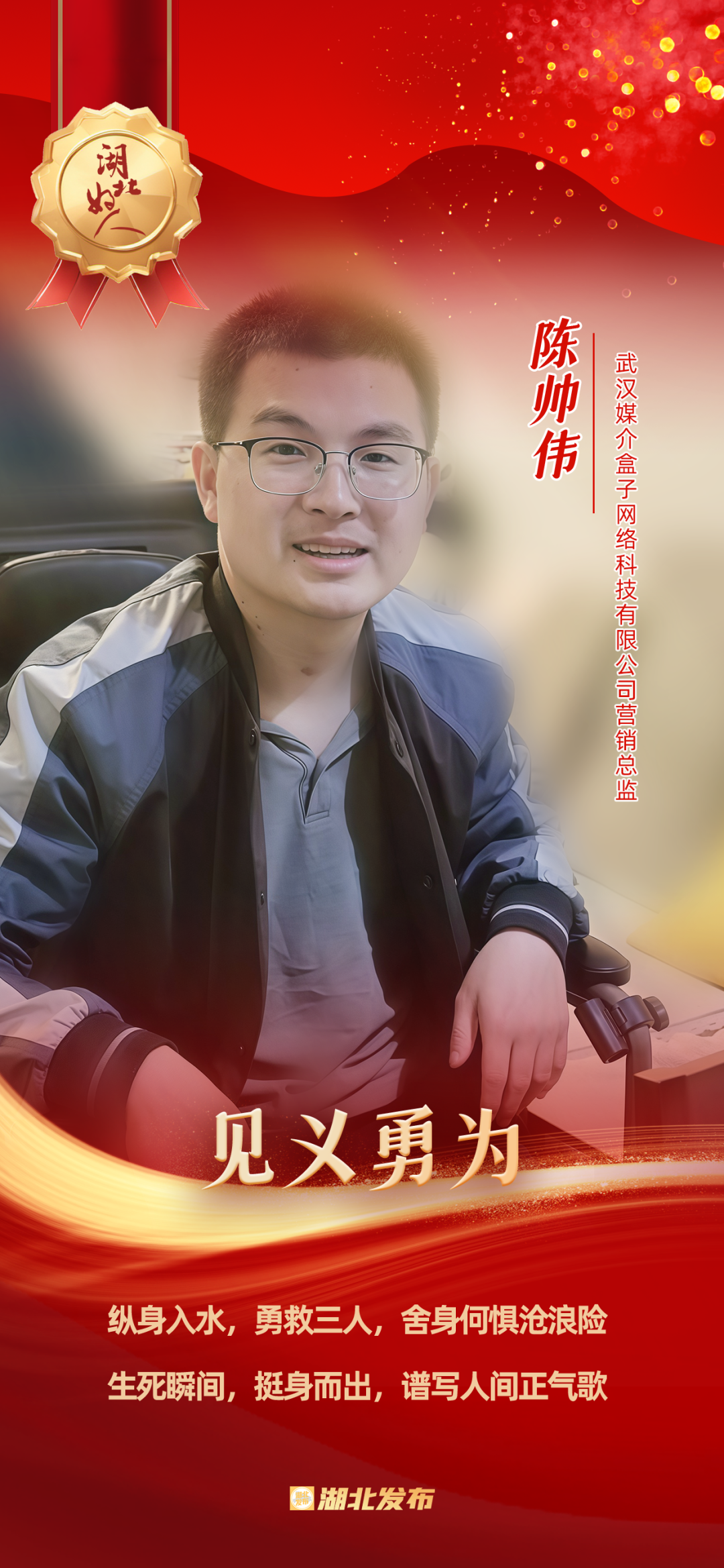近日,“湖北好人”2025年第一批上榜人物名单揭晓,共25人(组)入选。其中,来自东湖高新区的陈帅伟上榜。