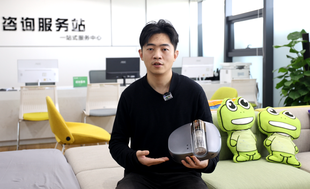 创现科技联合创始人潘天宇展示第二代扫床机器人