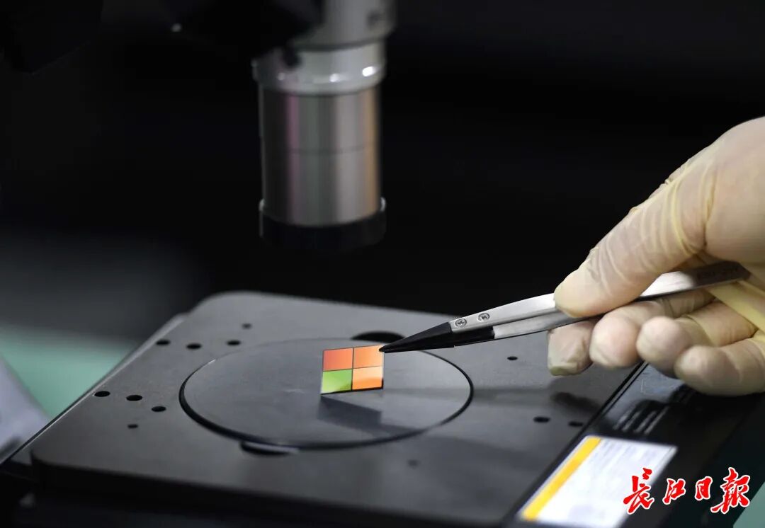 光谷实验室,科研人员在进行智能光电气体传感微系统的芯片测量