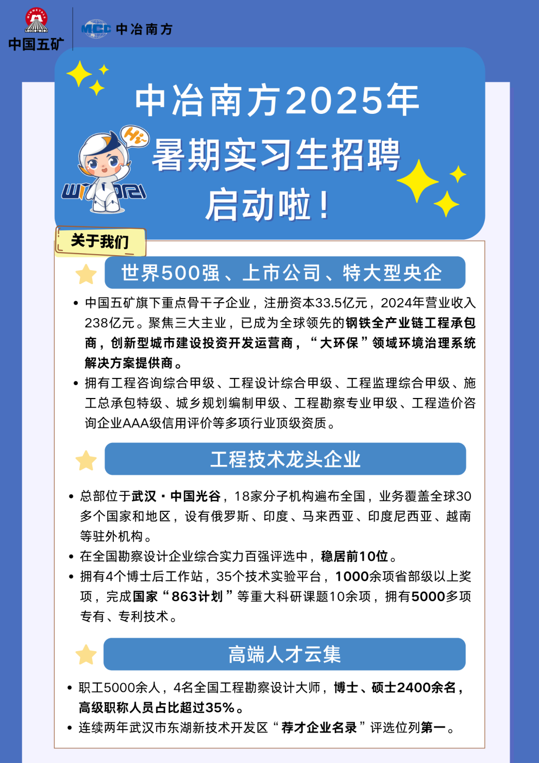 中冶南方工程技术有限公司是中国五矿旗下重点骨干子企业,注册资本33.5亿元,拥有工程设计综合甲级资质、工程咨询综合甲级资质、冶金施工总承包特级资质在内的多项行业顶级资质。