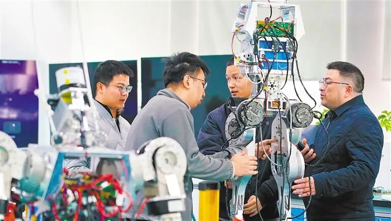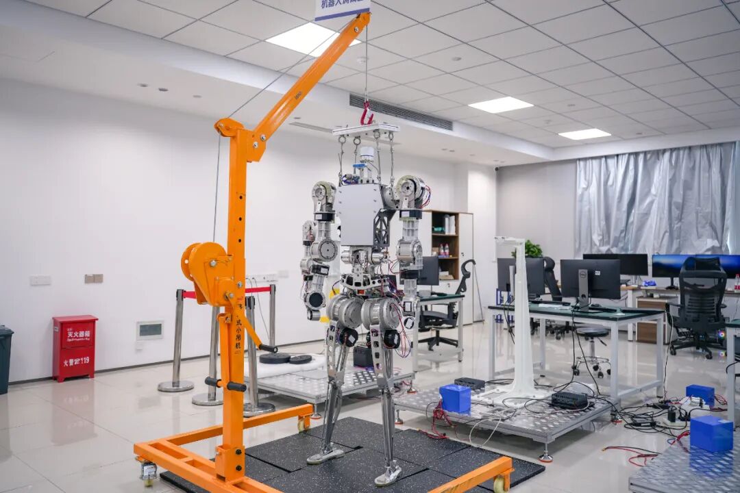 武汉格蓝若智能技术股份有限公司实验室,研发团队在进行人形机器人行走调试