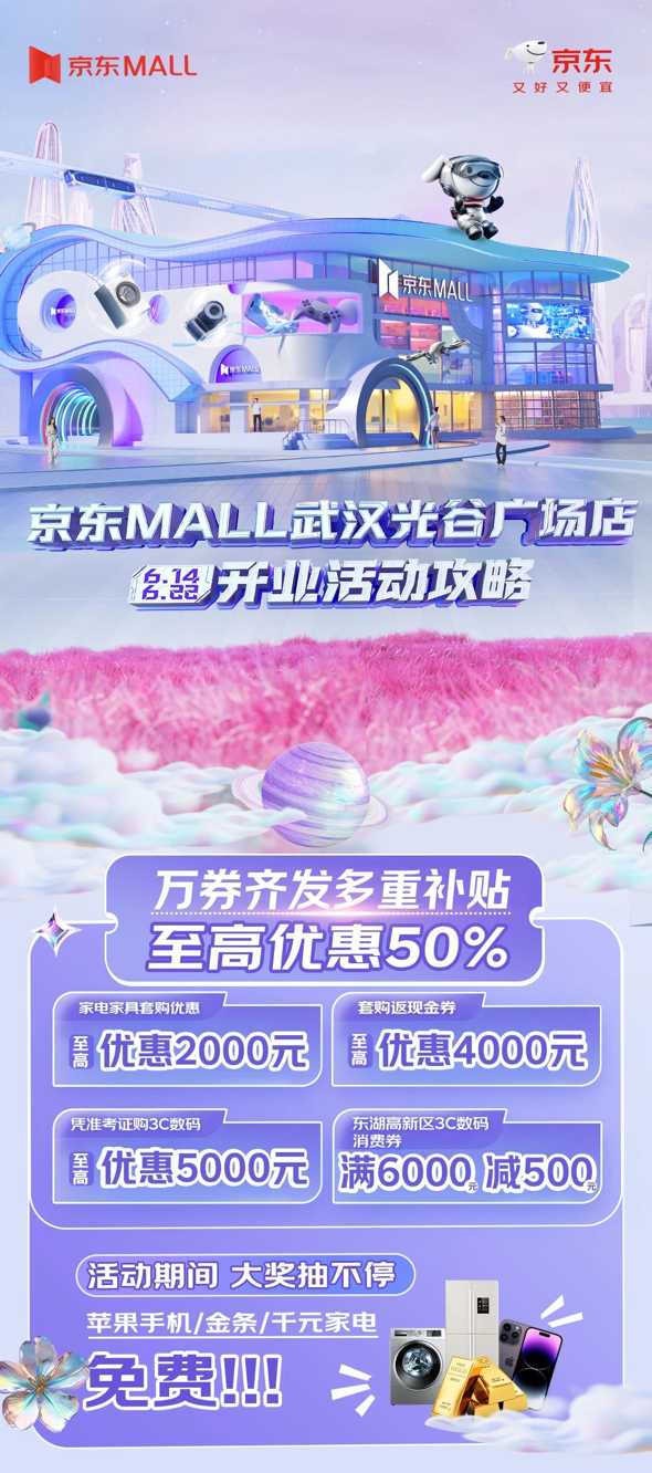 6月14日,光谷京东MALL将正式开业,成为京东集团在武汉布局的第二家全场景综合类消费商业体,打造光谷商业新地标。