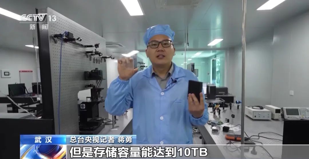 总台央视记者 蒋勇:这里有两款存储设备。一款是1TB的移动硬盘,市场的售价能达到500块钱。另一款是华中科技大学科研团队正在研发的玻璃光盘,厚度只有两毫米,但是存储容量能达到10TB,成本只要几块钱。