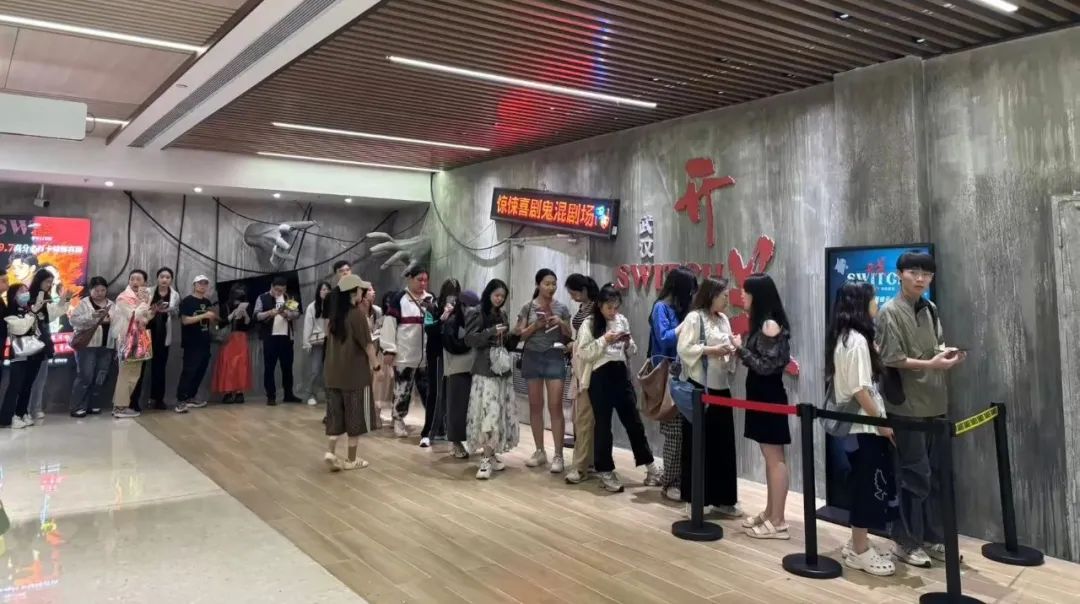 “灯光忽明忽暗,四处都是机关,NPC随时贴脸开大,还能和身旁的演员对戏,小剧场太刺激了!”近日,唐先生在世界城光谷步行街观看了惊悚喜剧《开关SWITCH》后感叹。