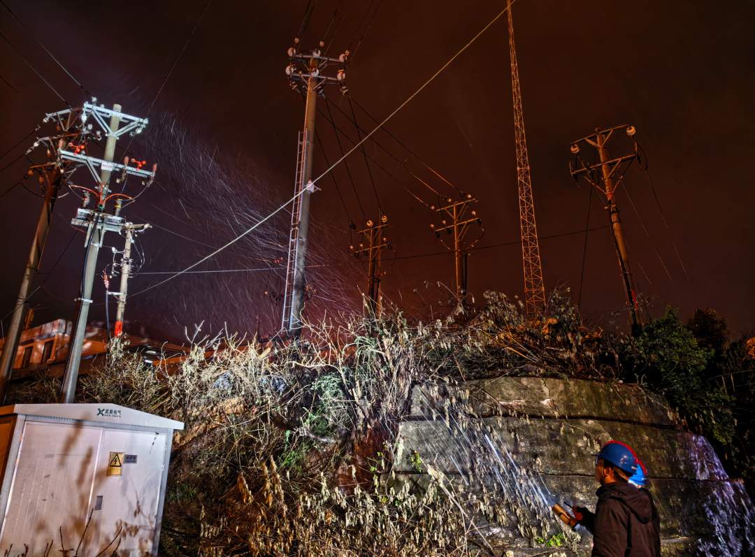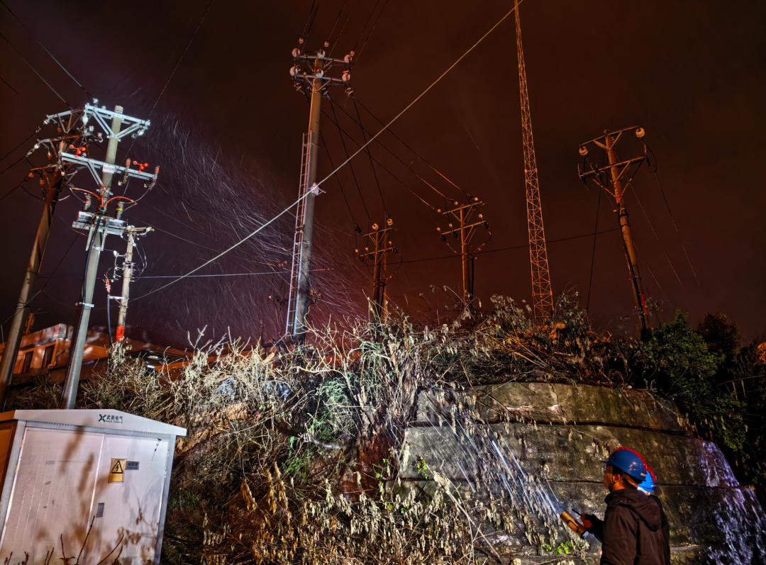 1月19日晚,国网武汉东新供电公司巡视人员在10千伏福利线开展线路夜间巡视