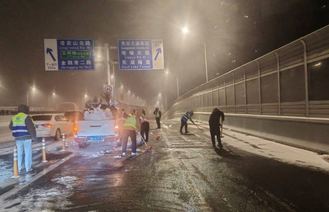 截至1月20日6时,东湖高新区已组织出动2400余人,车辆249台(其中包含撒布机37台、雪滚车17台、雪铲车16台、皮卡车42台,铲车43台),按实际情况撒播融雪剂491吨,铺设麻袋8150条,处置结冰点35处,10处地下通道通行正常,各公园市政绿化无断枝险情,道路总体通畅。
