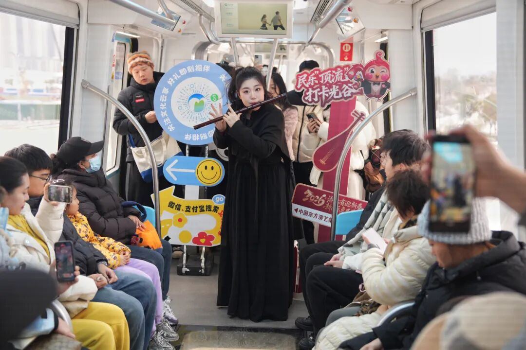 1月21日,雪后初霁,2026年湖北省迎新春新民乐惠民展演以一场沉浸式街头快闪在光谷温暖启幕。中国东方演艺集团的演奏家们走进光谷空轨、商场、园区与商圈,将悠扬民乐送至街头巷尾。