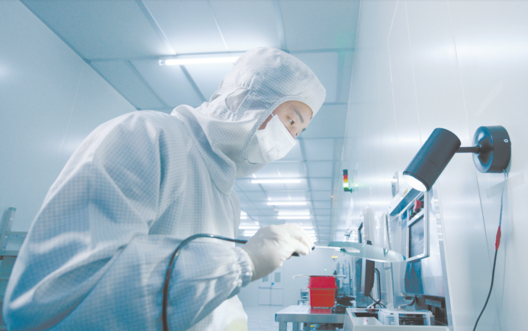 长飞先进武汉基地生产车间内,工程师正在检测产品