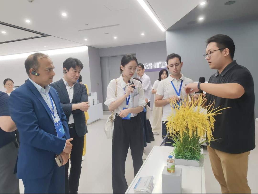 在武汉产业创新发展研究院,中外嘉宾了解“稻米造血”技术