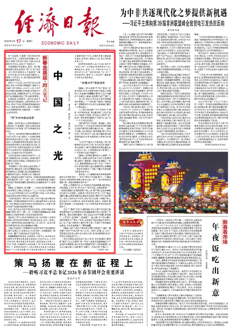 大年初一(2月17日),《经济日报》头版头条刊发报道《中国之光》,聚焦光谷发展。