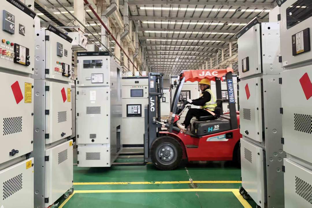 2月25日,盛隆电气智慧工厂内机器轰鸣,生产线马力全开,工人们全力以赴赶订单,智能配电柜等核心产品陆续下线,被运往全国各地项目现场。