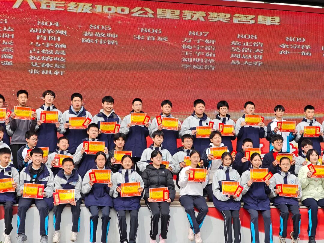 光谷四初进行寒假100公里跑步打卡活动颁奖