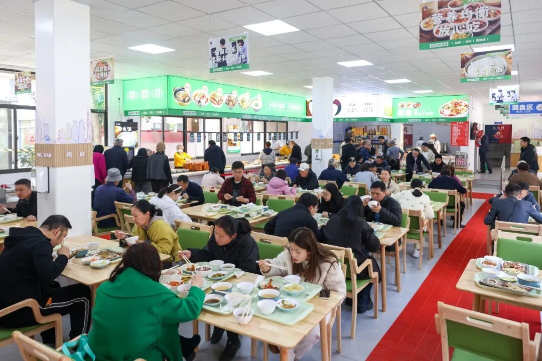 同时,食堂还引入了自助打饭机、智能消毒餐具设备等智能化配套,既提升就餐效率,也筑牢食品安全防线。目前,食堂日均接待客流约700人次,人均消费15元左右。