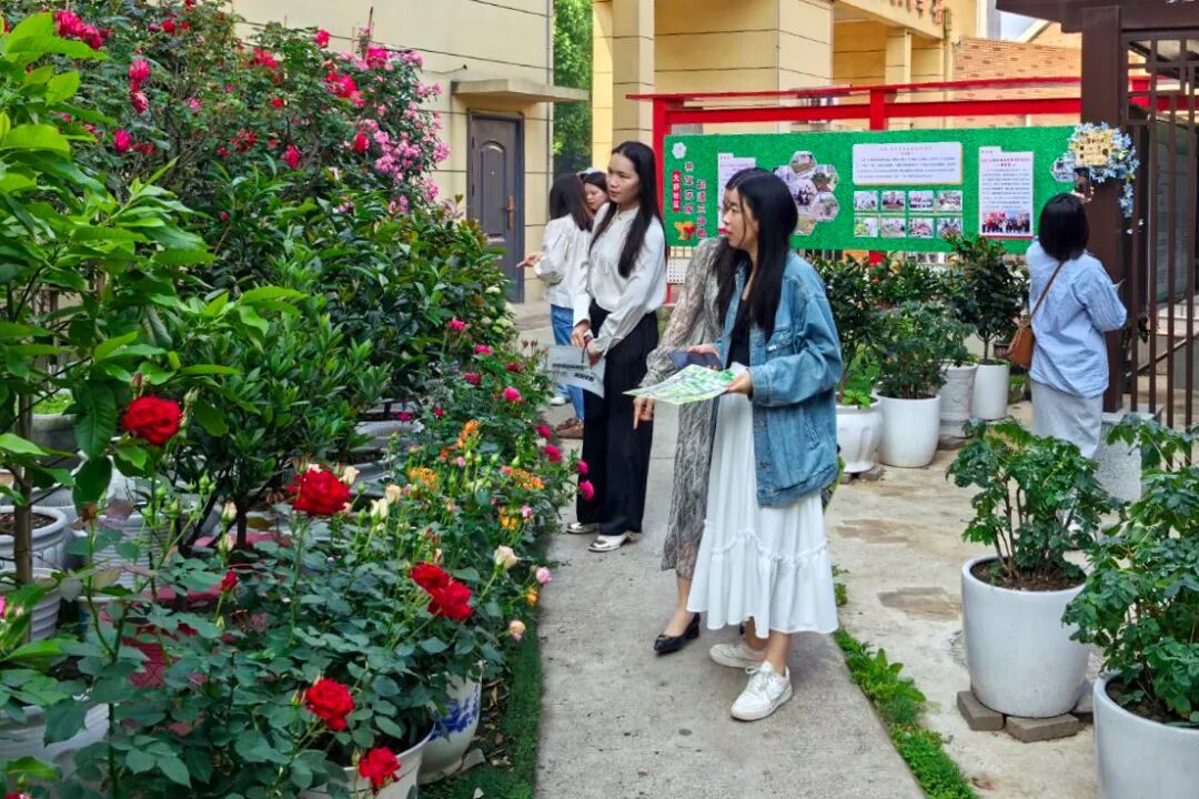 说干就干。舒邦威把自家门前的“一亩三分地”当成了“试验田”。那段时间,邻居们总能看见他忙碌的身影:他骑着电动车,一趟趟从外面搬运营养土;全家老小齐上阵,选种、育苗、修剪……为了省钱,很多围栏和装饰都是他亲手制作。原本光秃秃的水泥地,在他的精心呵护下,渐渐变得花团锦簇。