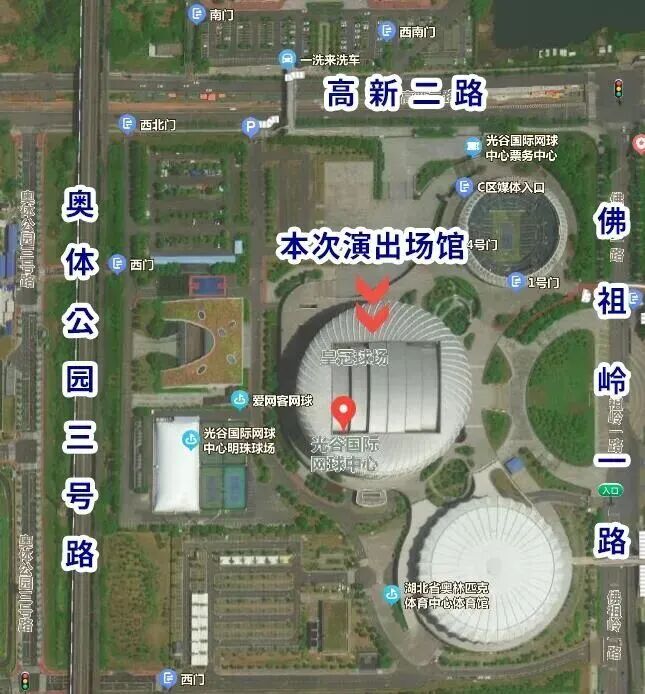 (1)市内及雄楚高架方向来,建议走光谷一路、高新二路。(2)南三环线方向车来车,建议走高新立交、高新大道、光谷三路、高新二路。(3)北三环线方向来车,建议走新武黄立交高新二路匝道、高新二路。(4)奥体公园三号路、奥体公园南路实行单向通行,奥体公园路停车场出场车辆一律由奥体公园东路、奥体公园南路路驶入三环线。(5)高新二路西向东车辆由光谷三路上高新大道;高新二路东向西车辆由光谷一路上高新大道。