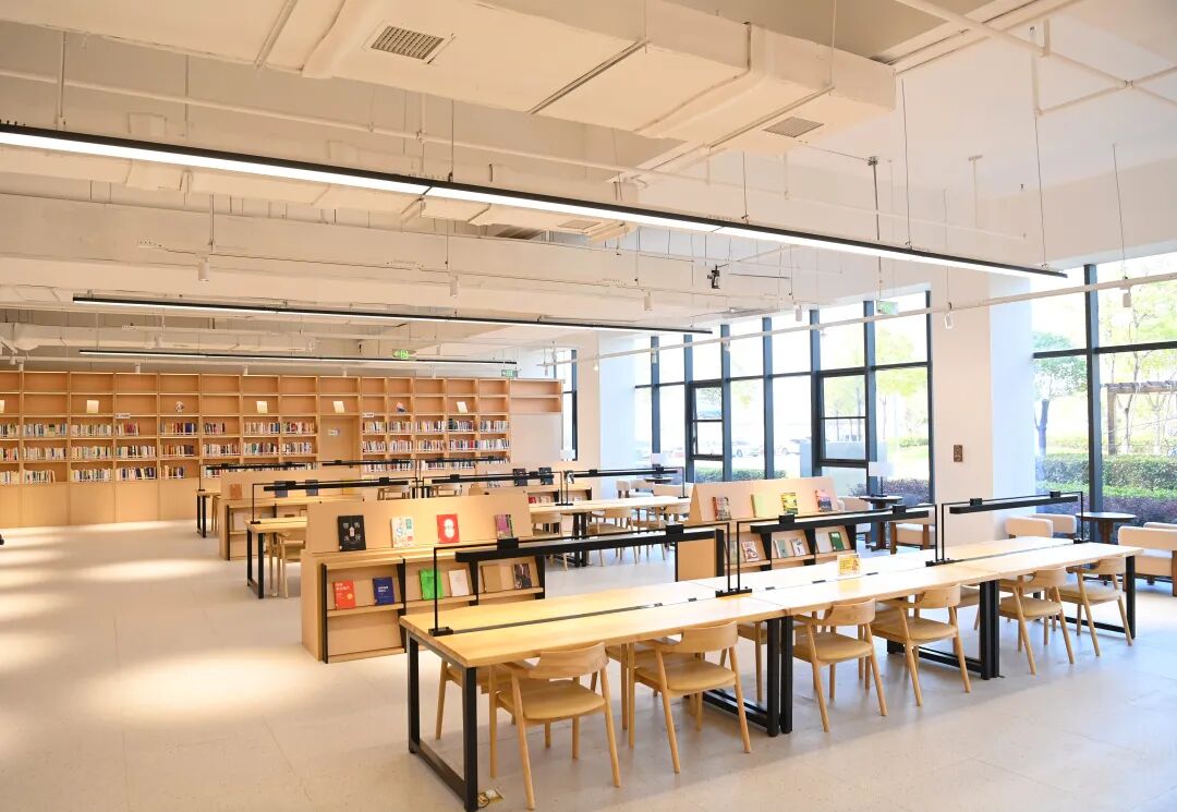 空间动静分区——安静阅读角适合独处,轻社交分享区可供交流。分馆中央的自习阅读桌均配有智能灯光,适合工作或碎片化学习。