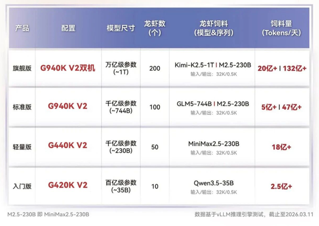 此次长江计算共推出四款Claw一体机,覆盖从入门级到高端的全场景需求。其中,入门级产品可部署10只“龙虾”,一天最大计算量相当于2.5亿Token用量,适合中小企业试水;旗舰级产品支持部署200只“龙虾”,一天最大计算量相当于132亿Token用量,可满足大规模AI应用需求。