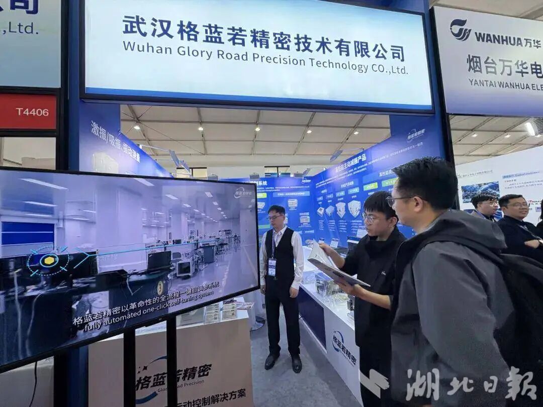 其中,启云方展示了覆盖半导体设计、制造、管理等关键环节的工业软件“国产全家桶”(点击了解);新创元重点展出超薄基板、超薄SOP基板、玻璃基板三大核心产品;长飞石英带来了半导体石英材料全系列解决方案;精测电子携半导体全领域量检测解决方案双馆联展;格蓝若展出了应用于半导体设备、高端电镜等领域的主动减振系列产品,性能指标居国际领先水平。一批光谷企业用核心产品发出光谷声音。