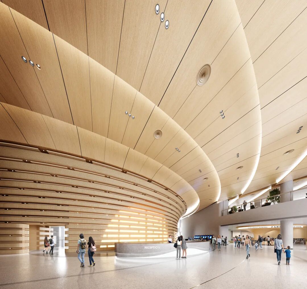 其建筑设计以“光谷-聚合之种”为主题,将一颗种子不同时期的形态融入设计,打造一个绿洲般的“城市摇篮”和艺术生活的发生器。图书馆设有24小时读者阅览室、自习室、培训室等、母婴室等多元空间。