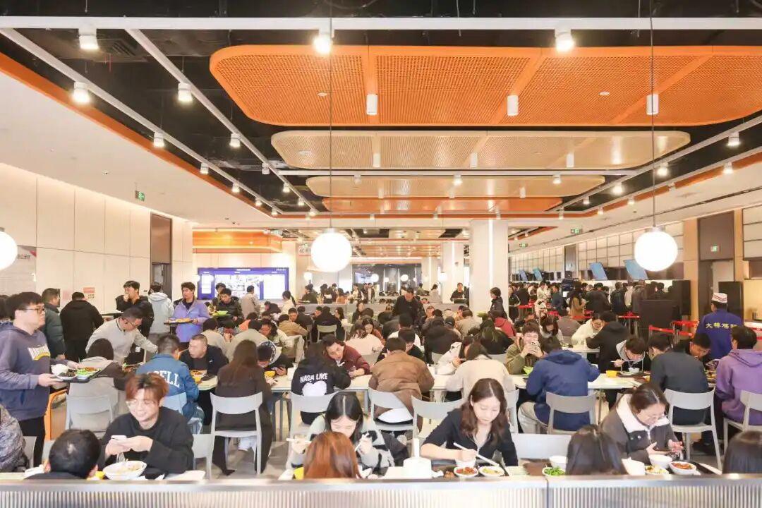 食堂总经营面积超过1万平方米,5层楼目前开放3层,设有1500个座位,每天可容纳近6000名员工用餐。