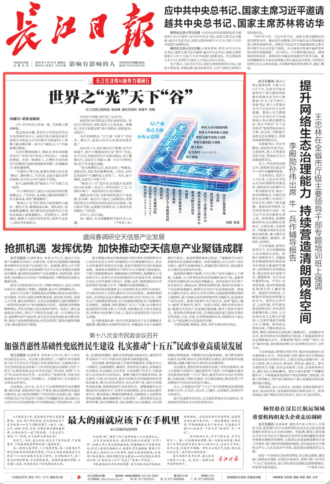 4月10日,《长江日报》头版头条刊发报道《世界之“光”天下“谷”》,以下为全文转载。