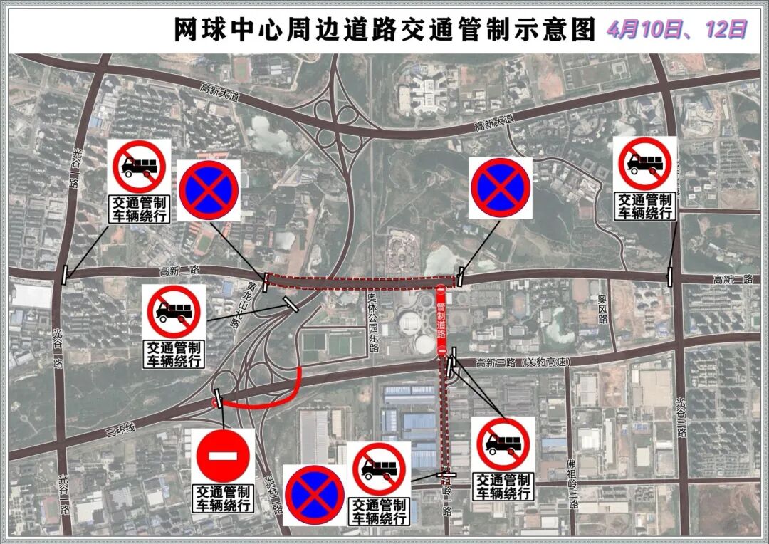关豹高速佛祖岭一路立交往网球中心匝道、三环线高新二路出口匝道将采取临时交通管控,禁止车辆通行。