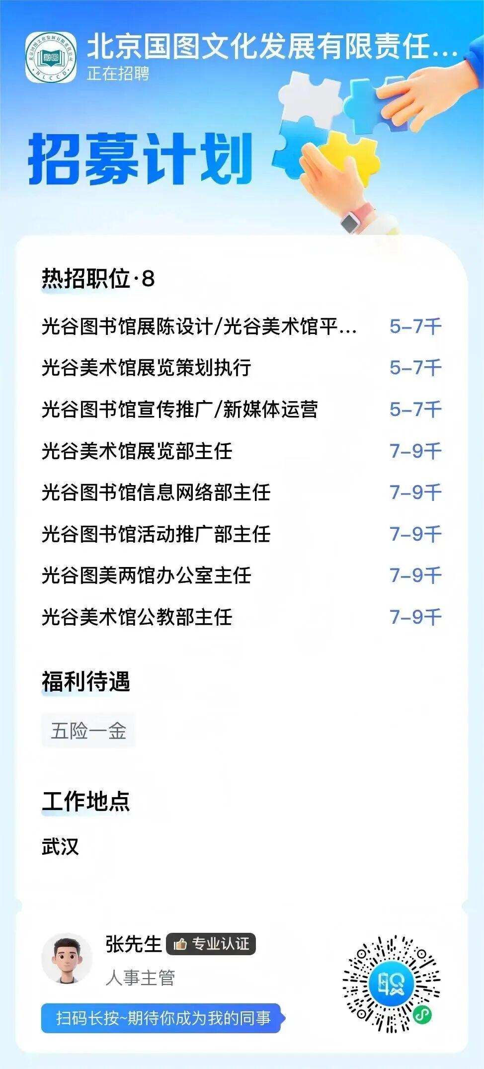 6、热爱公共文化事业与图书馆工作,能深耕光谷文化领域,具备统筹调度全国图书馆行业优质资源的能力;拥有大型全民阅读品牌活动策划落地、特色馆藏建设项目实操经验,熟悉图书馆智慧化建设全流程。